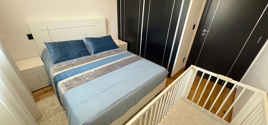 Des rangements sont intégrés dans chaque espace, et un lit bébé peut être ajouté sur demande.